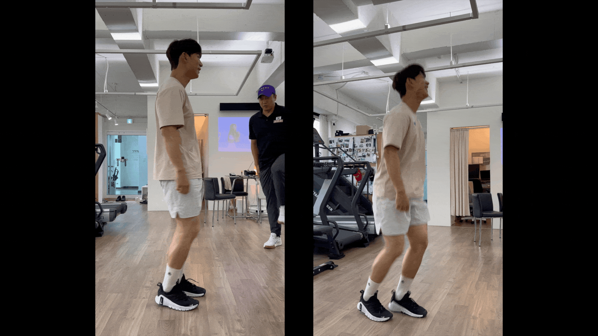 위 운동은 이러한 무릎 우세 움직임, 착지 타이밍 향상, 하체 리듬 등을 동시에 훈련할 수 있어 점프 후 균형 회복과 다음 동작으로의 연결성을 높이는 데 중요한 역할을 합니다.