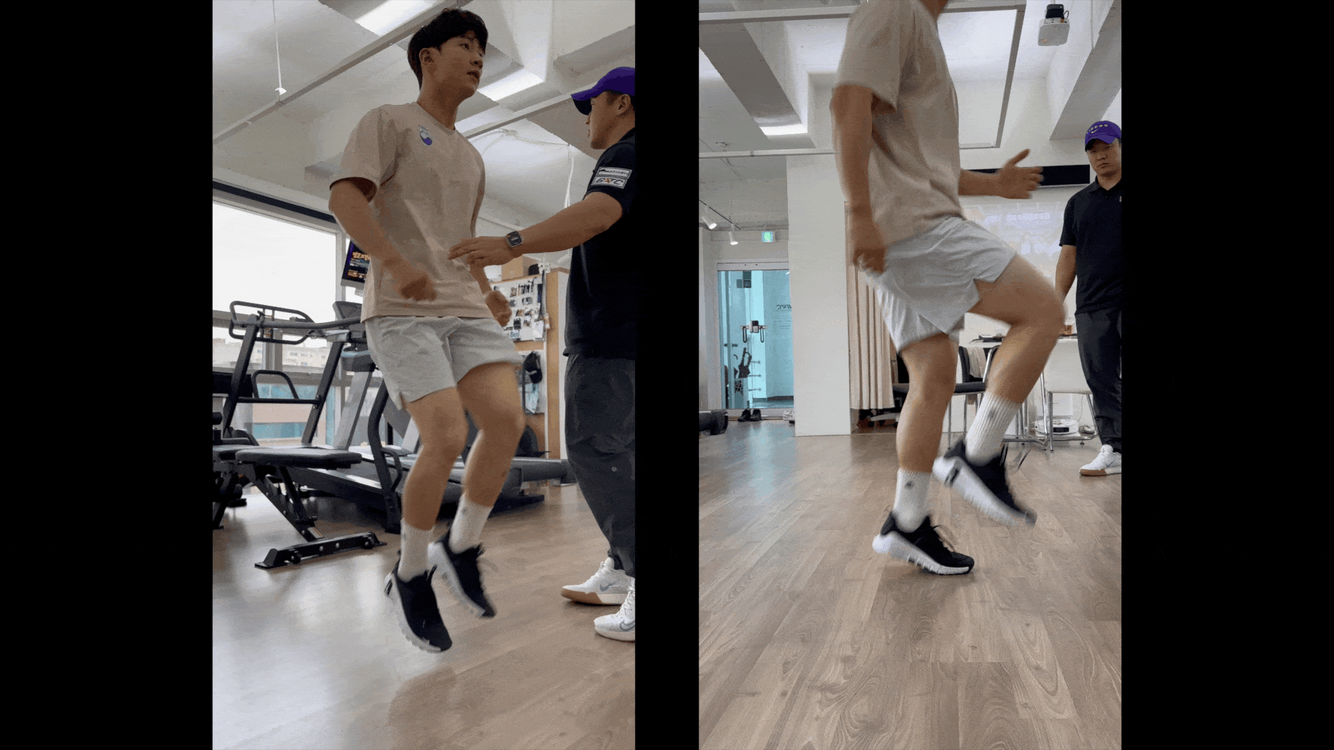 지면반발력을 이용해 빠르게만 점프하는 것이 아니라 하체의 리듬과 밸런스, 코어 안정성을 동시에 조절해 움직임의 타이밍과 정확도를 훈련합니다.